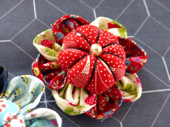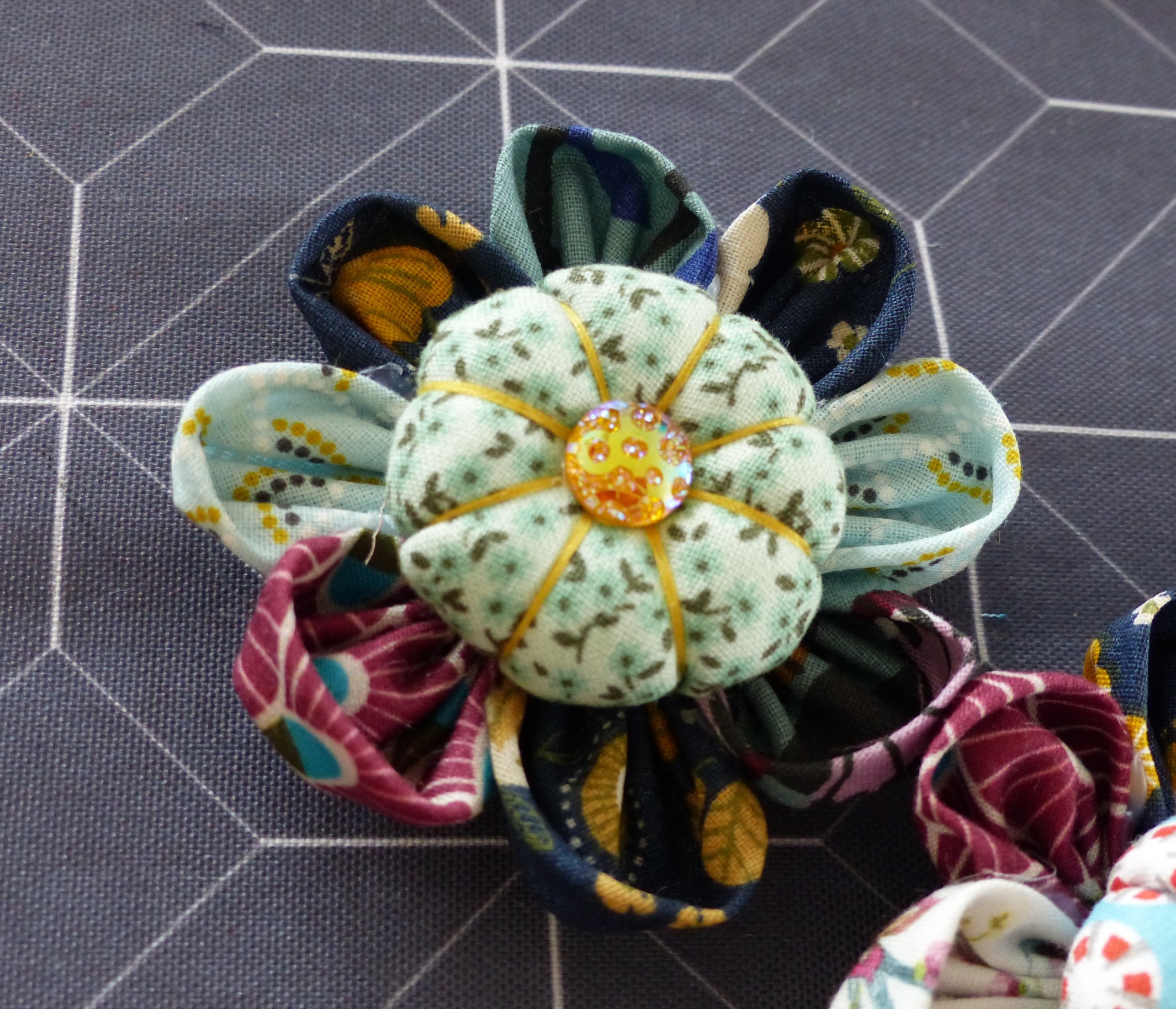 Lot de 3 fleurs Kanzashi pour agrémenter toutes vos créations couture, vêtements, sacs, accessoires de coiffure ou autres ...