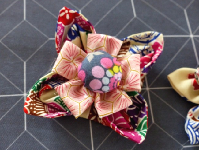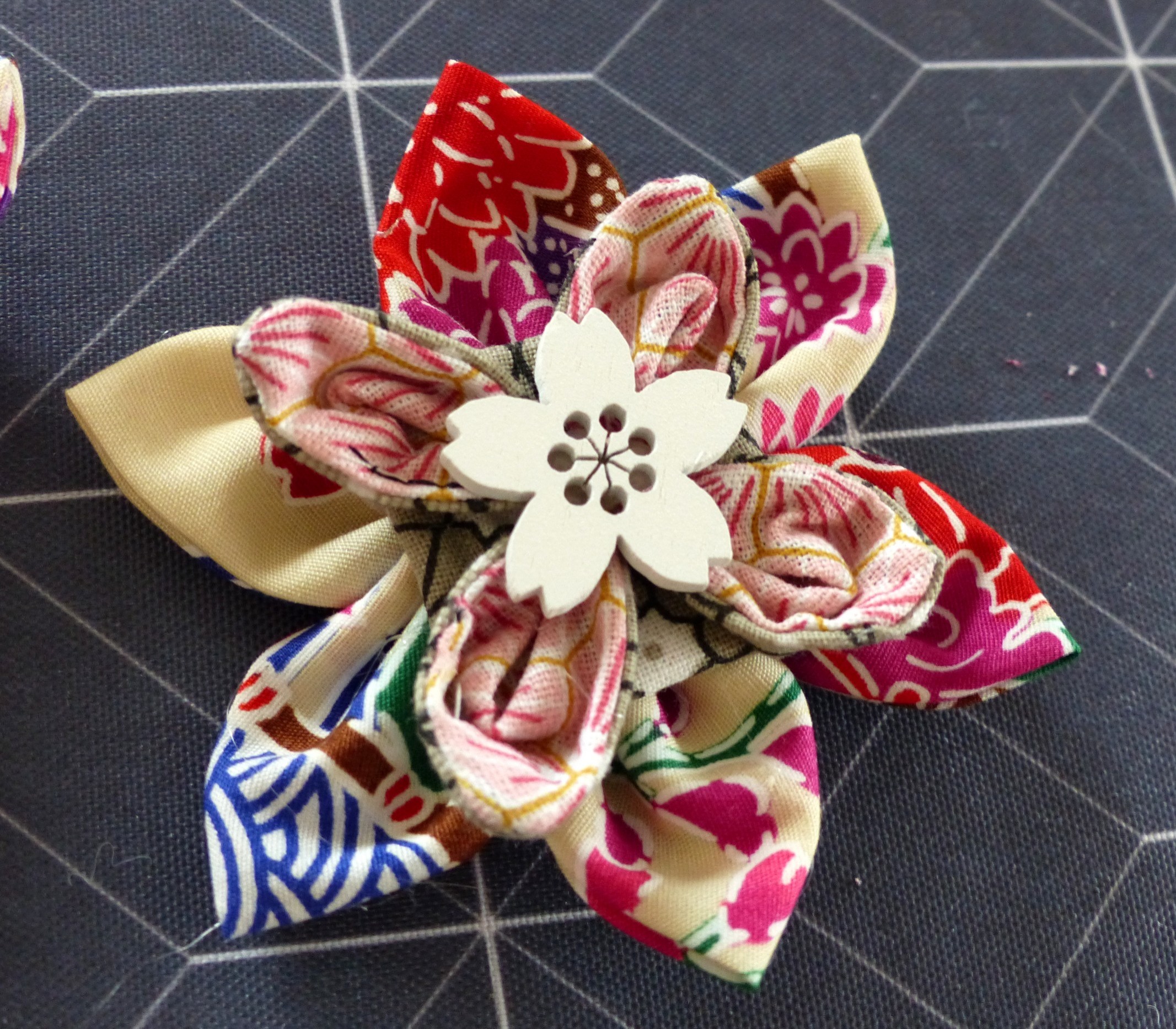 Lot de 2 fleurs Kanzashi dans les tons de rose avec deux formes différentes pour agrémenté ou rajouté sur une création textile, sacs, chapeaux, articles de coiffure etc ...