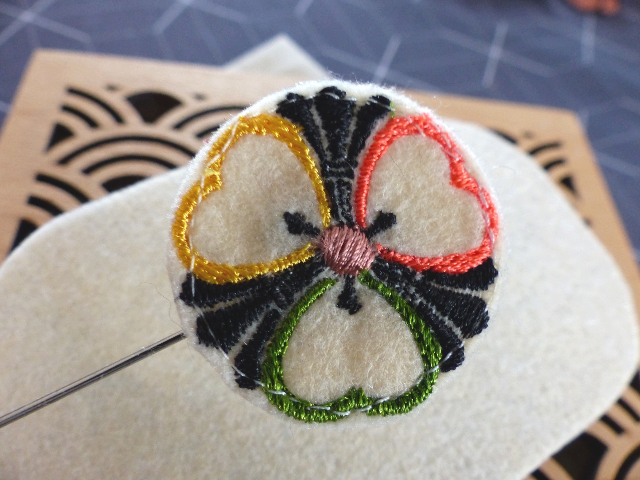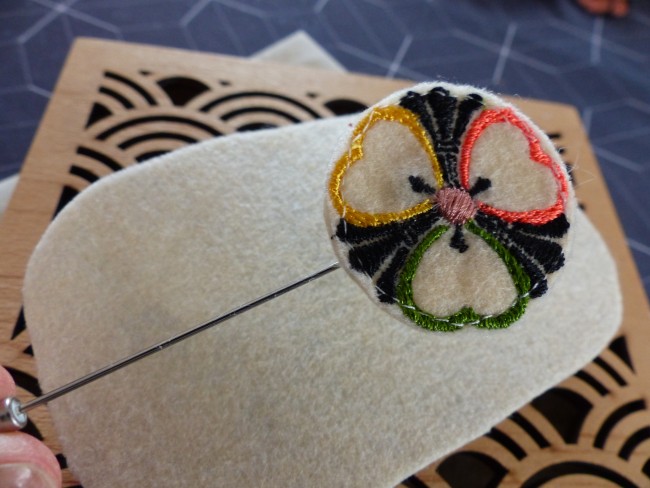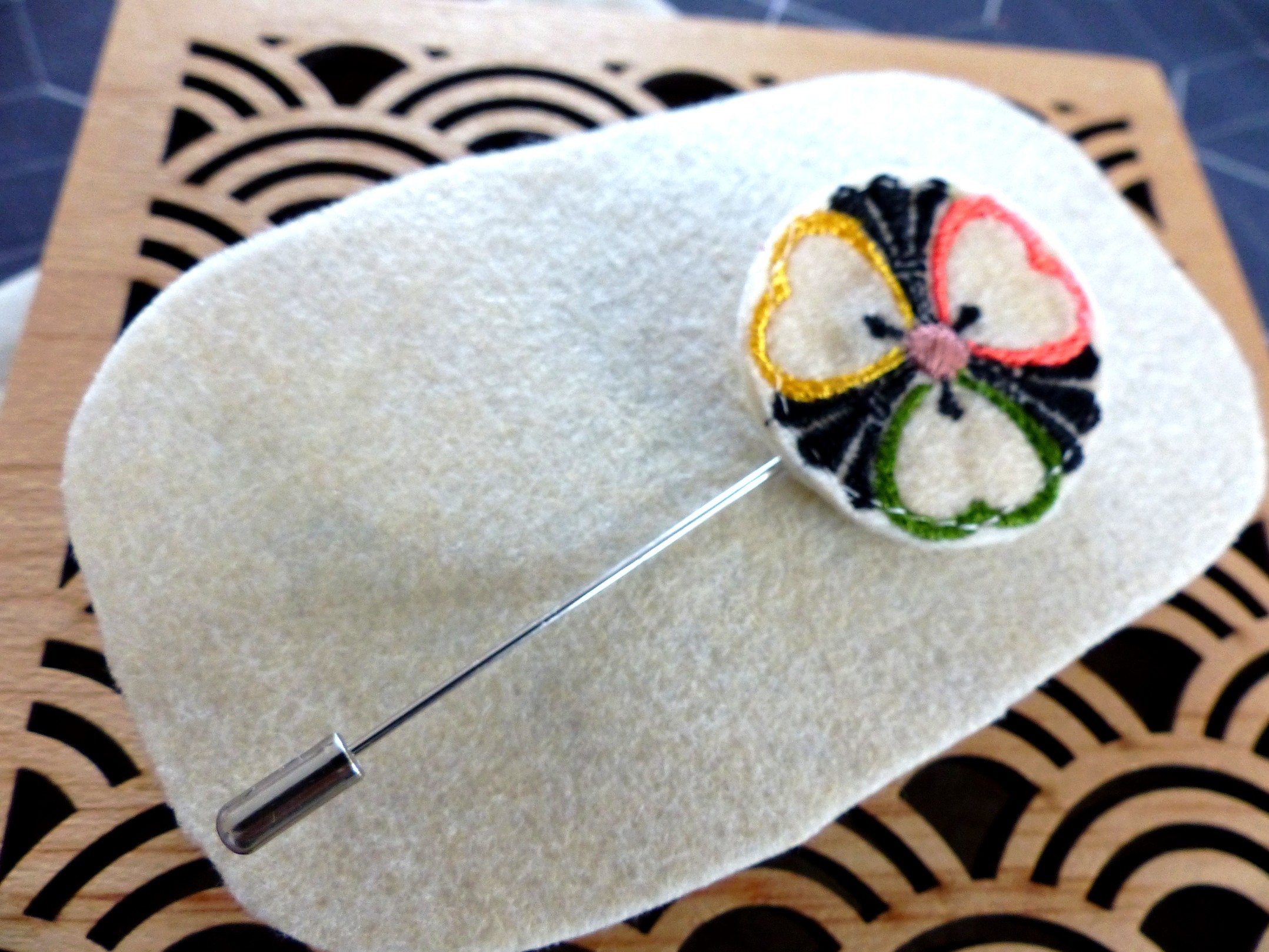 Pique broche "fleur 3 coeurs" brodé sur feutrine fine écrue