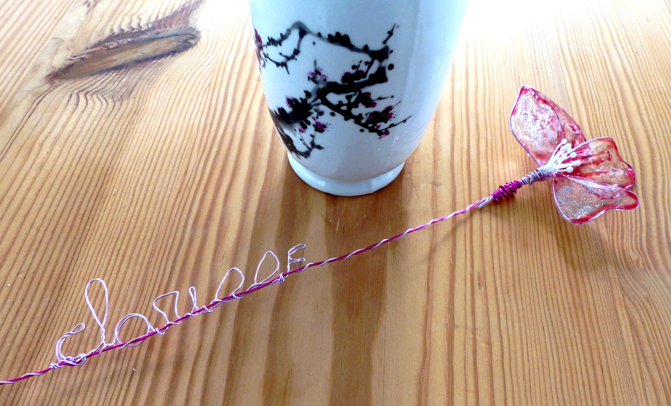 Tige en fil alu un peu plus gros en rose vif, longueur environs 35 cm fleur complète. Lors de votre commande m'annoncer le prénom à inclure ... Décoration intérieure mise seule en soliflore ou bien en bouquet.