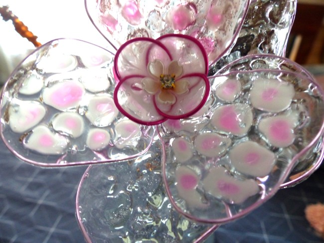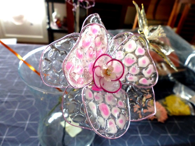 Fleur résine, pétale alvéolées et tons rose