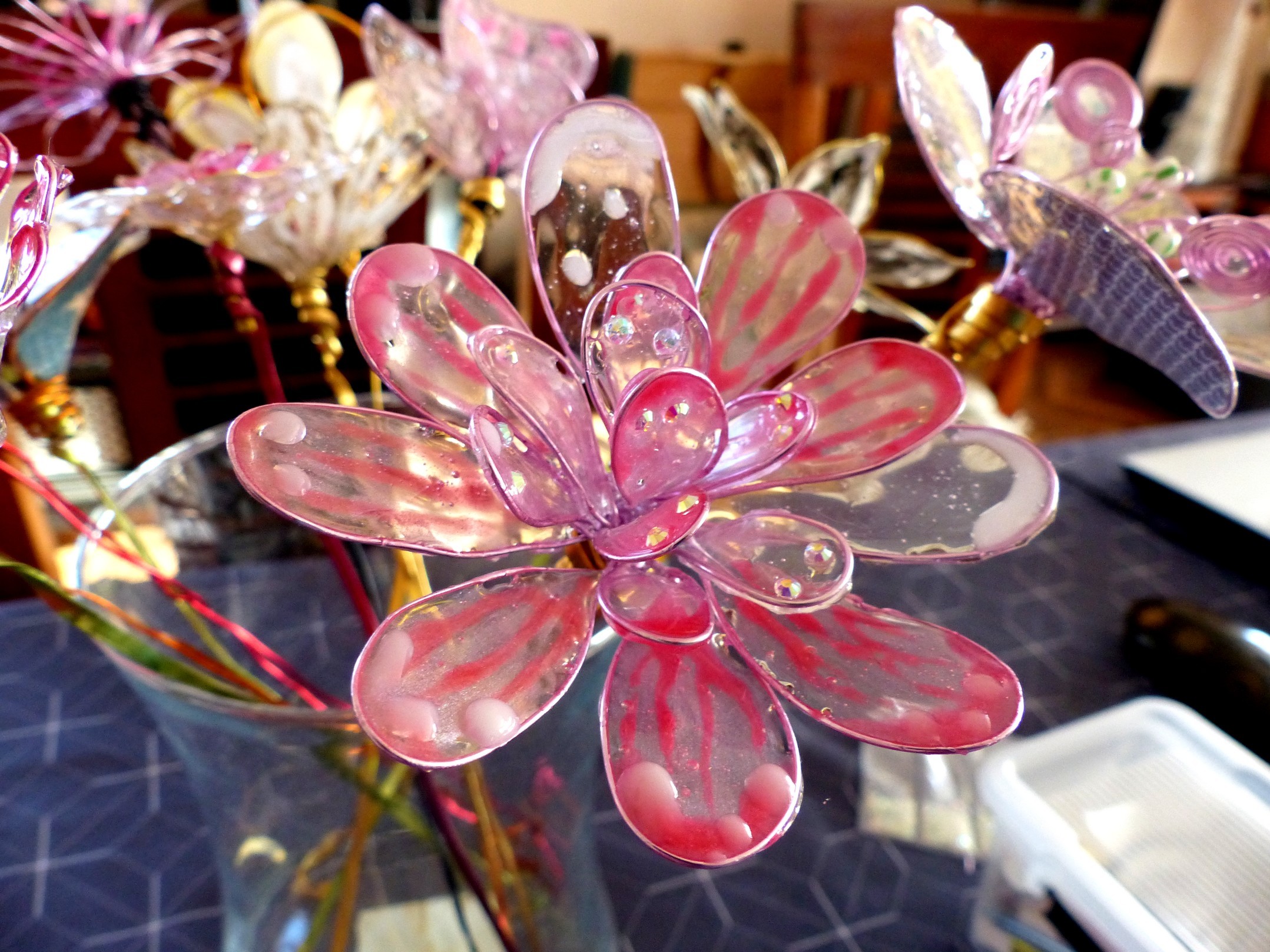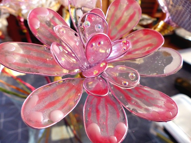 Belle fleur résine rose poudré et scintillants