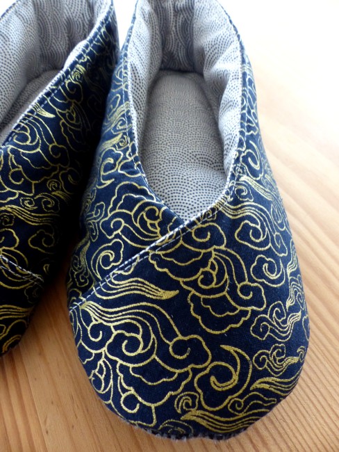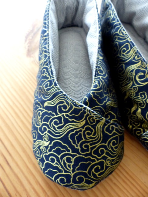 Chaussons femme kimono "vagues japonaises" noir et dorures