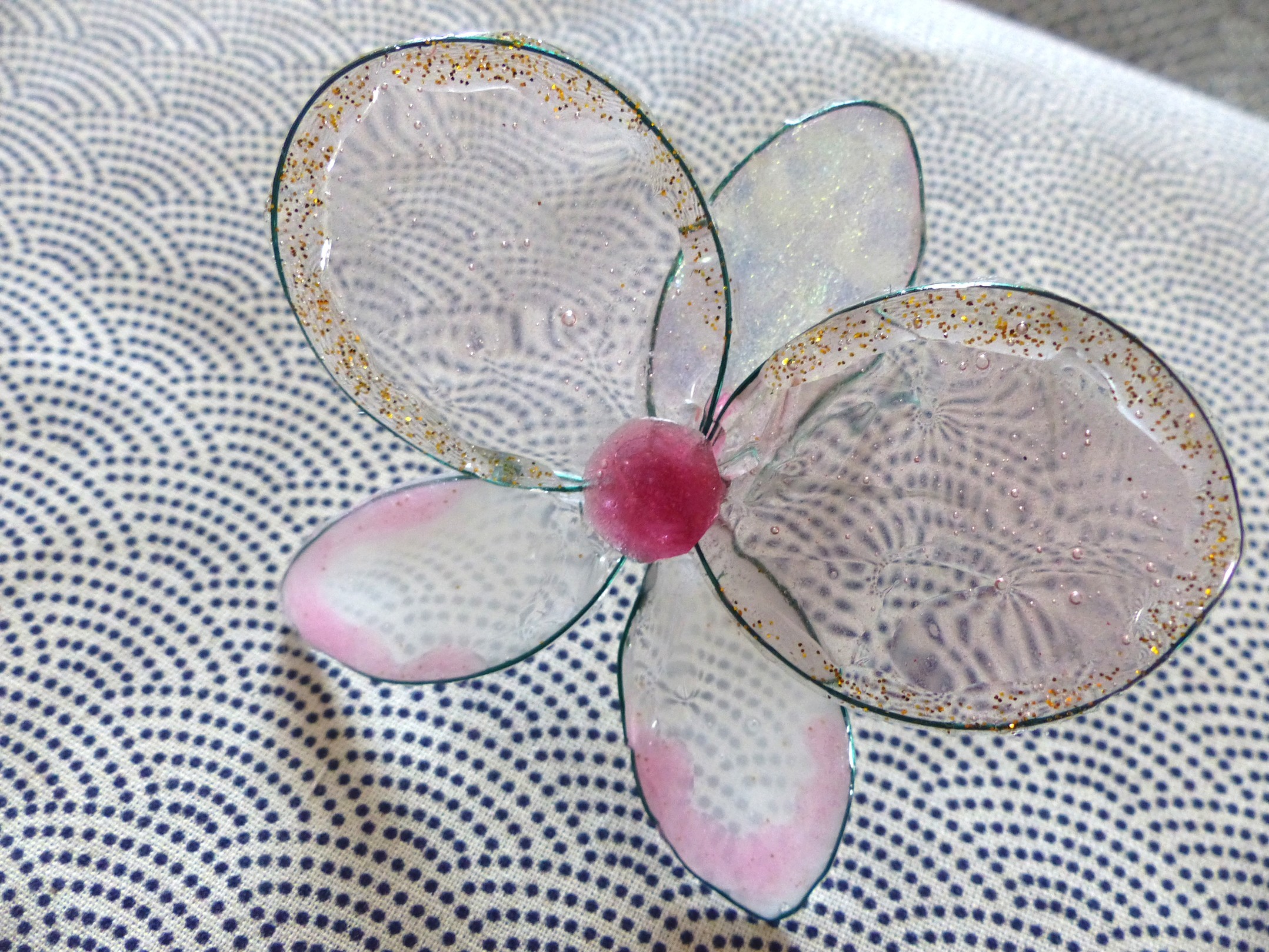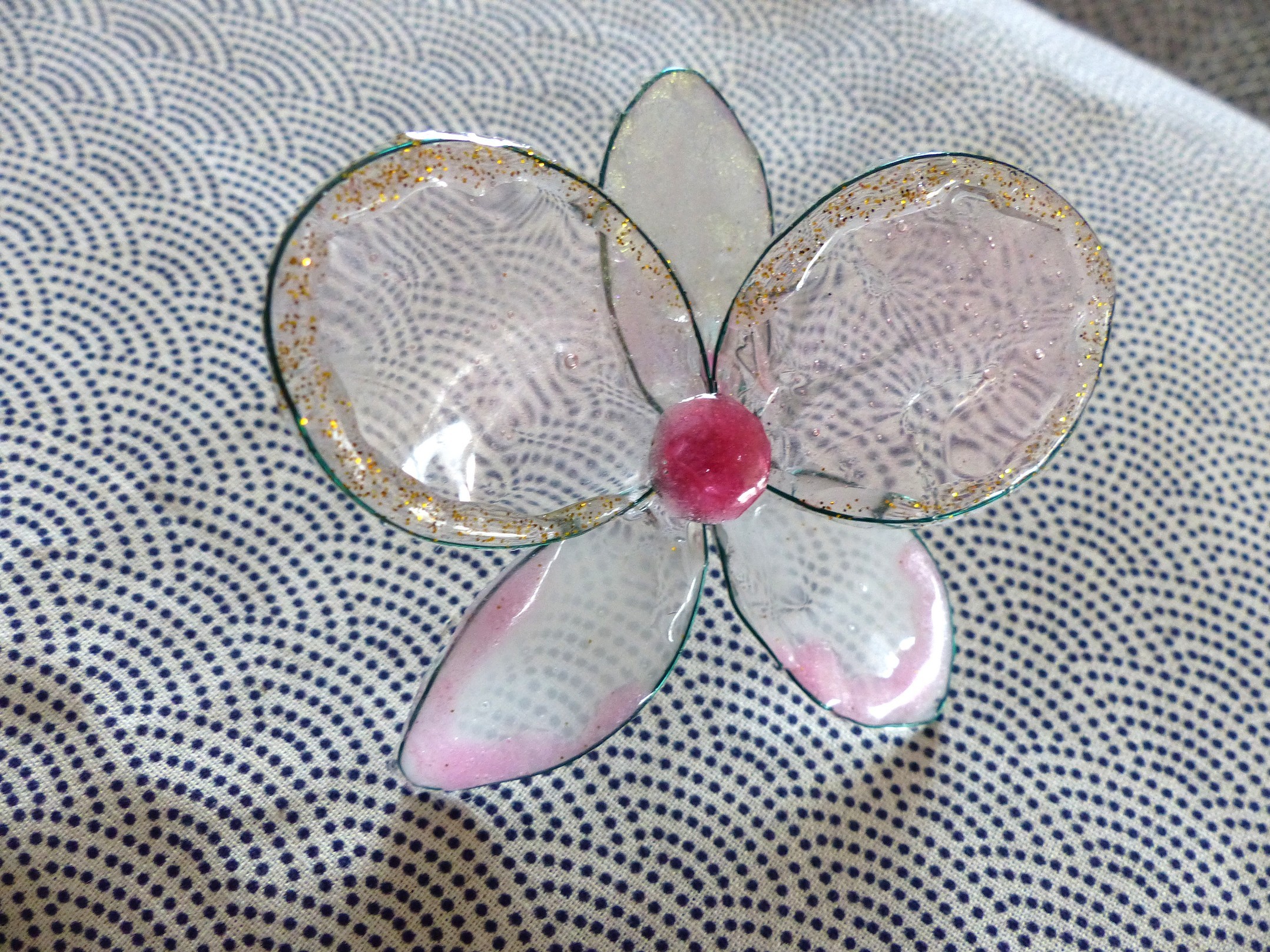 Fleur Orchidée résine , notes de rosée et pailleté doré