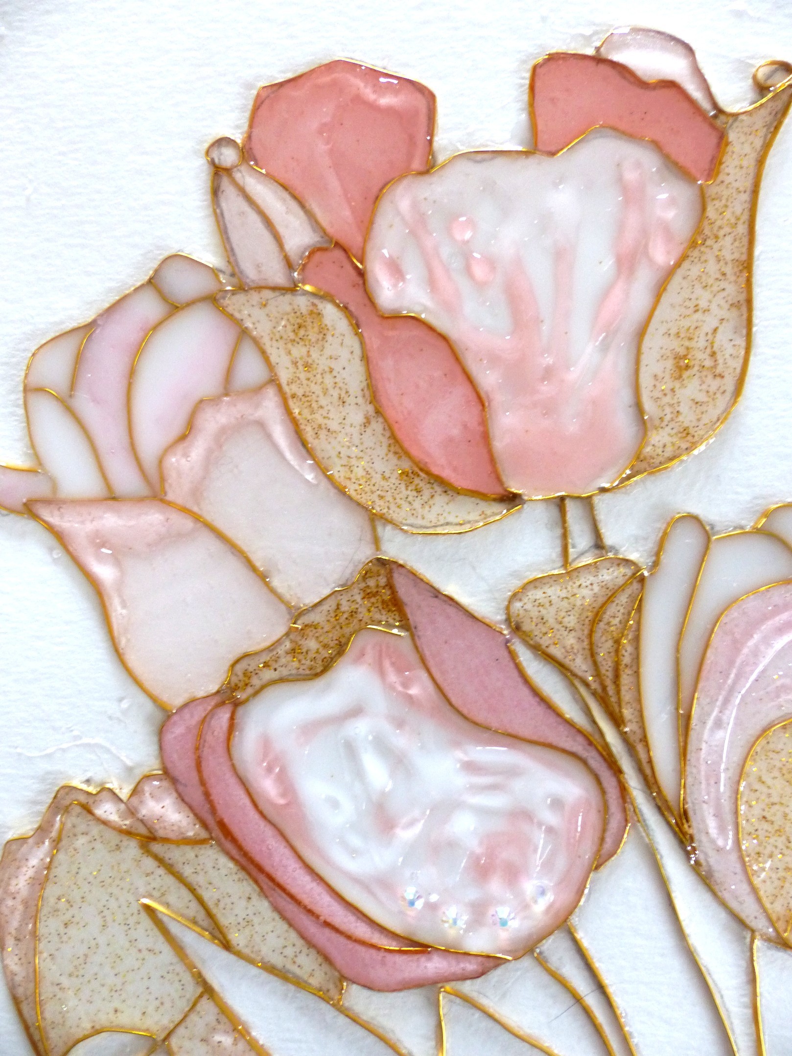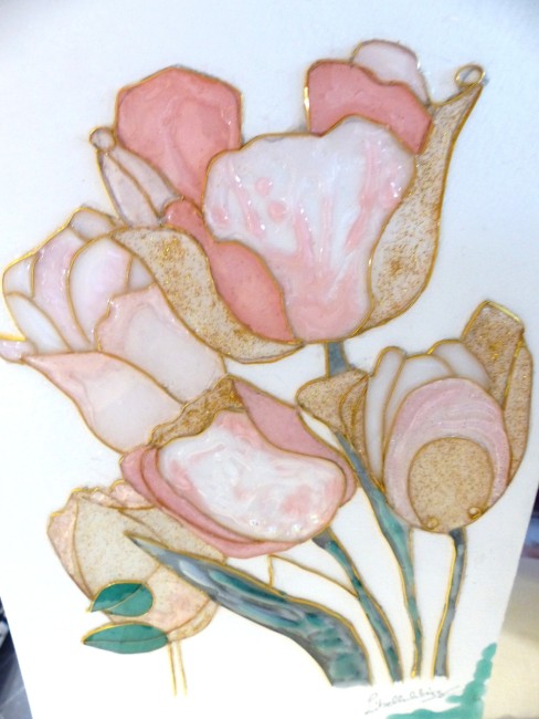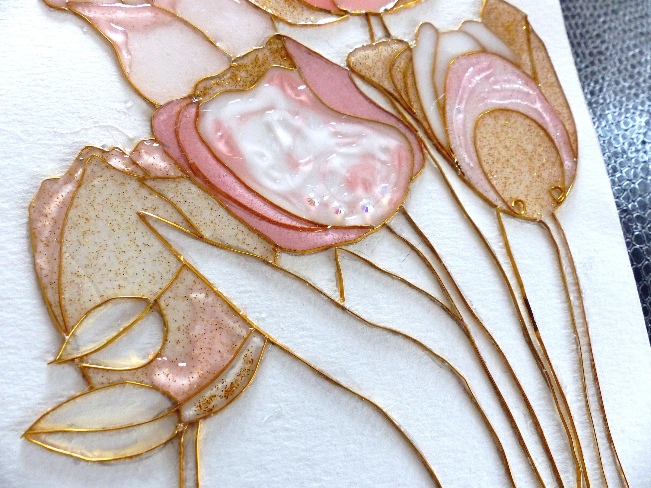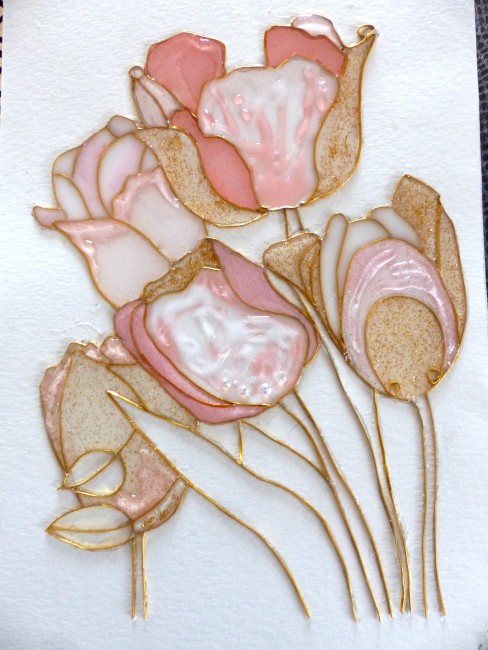 "Tulipes" cloisonnage et résine sur feuille, décoration intérieure