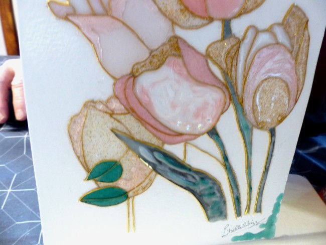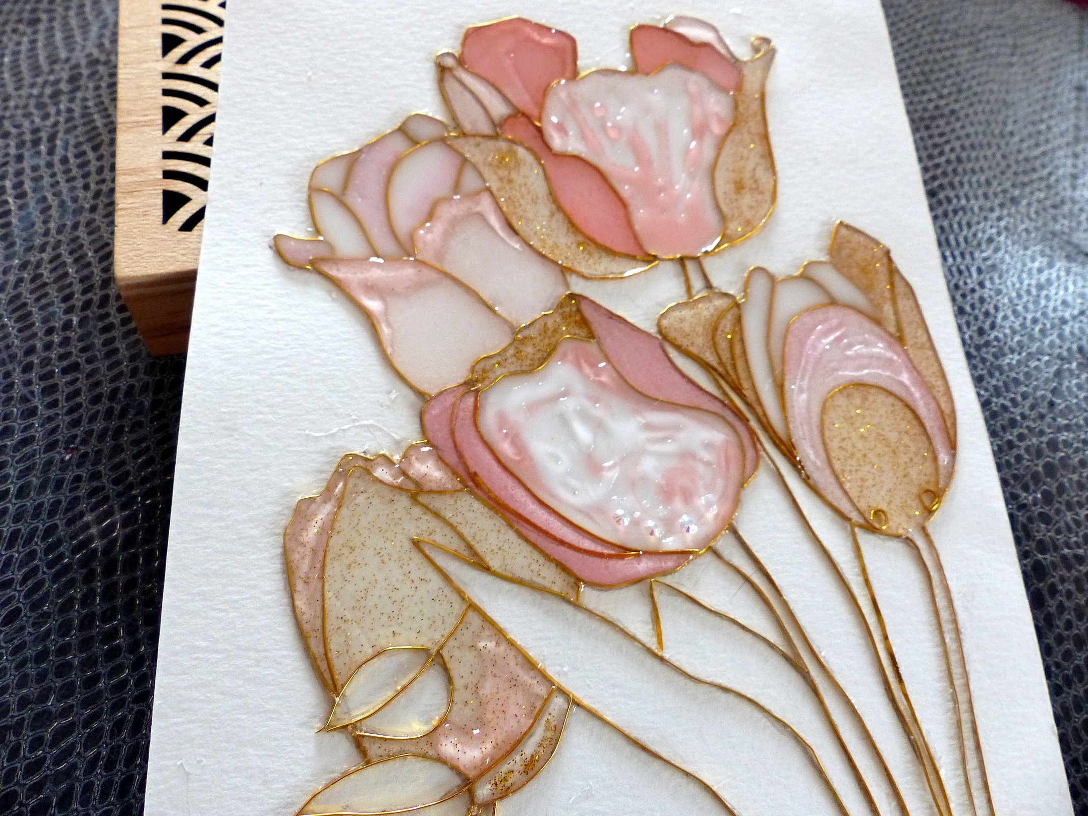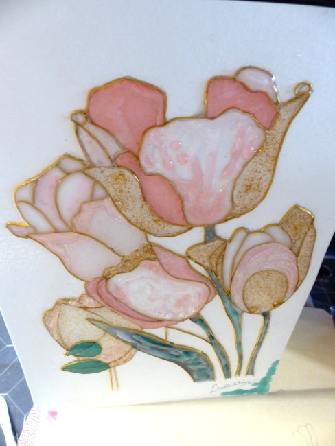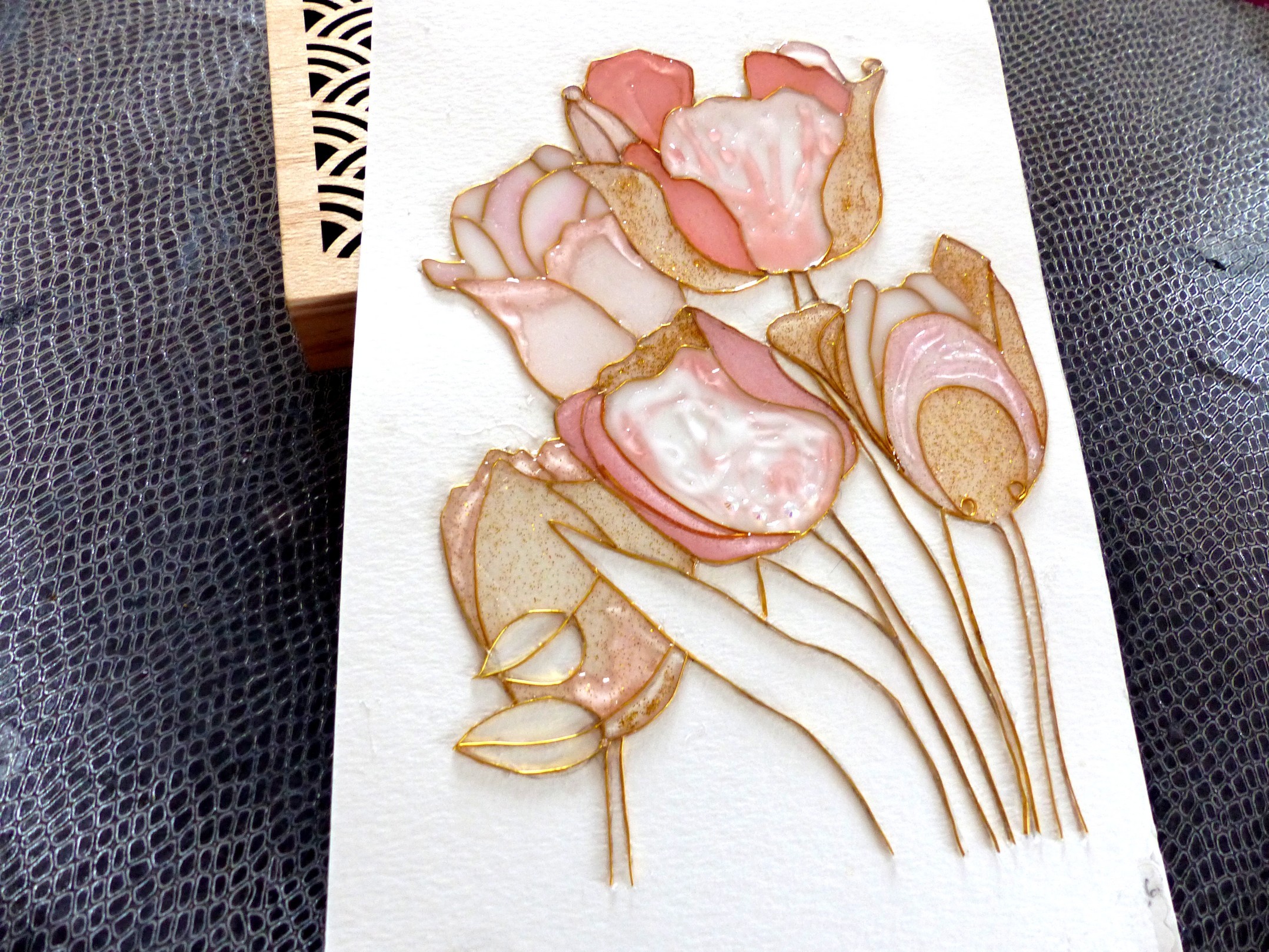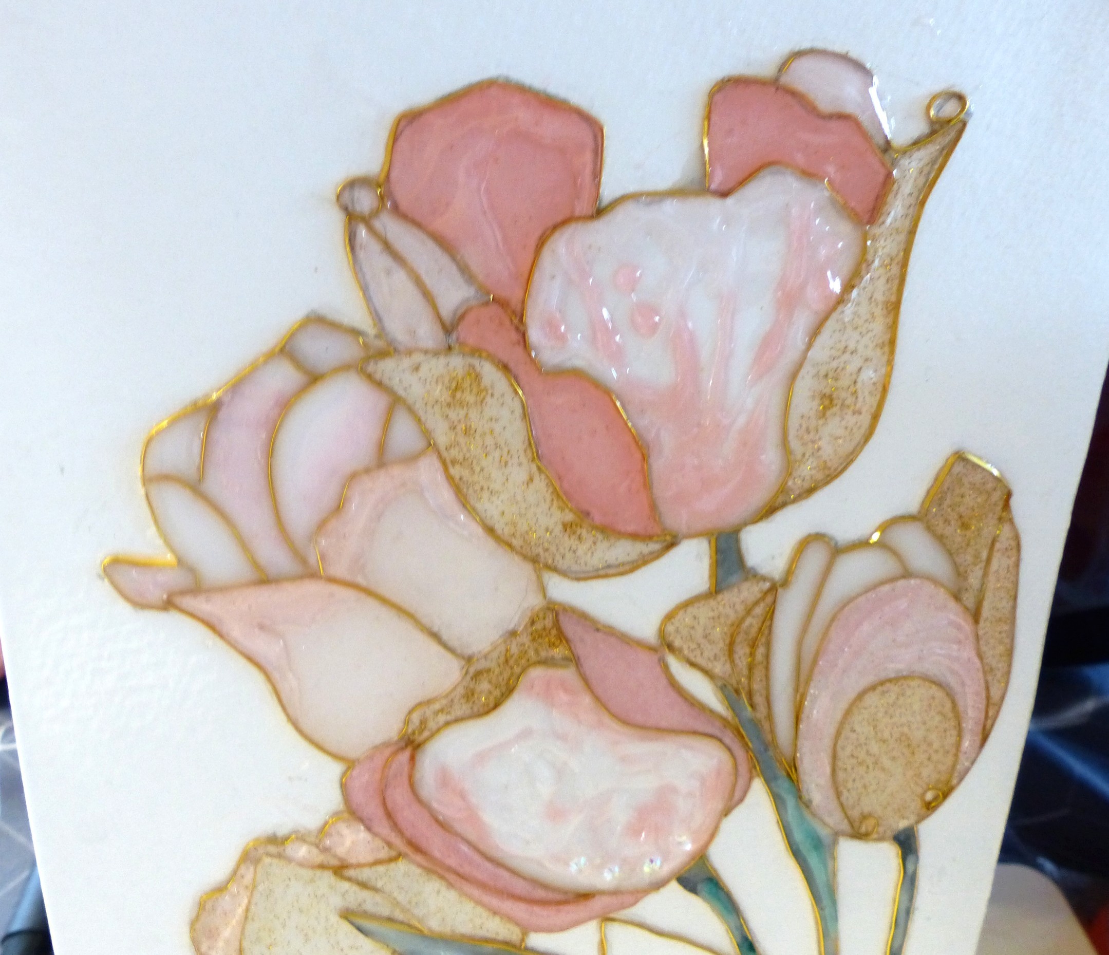 "Tulipes" cloisonnage et résine sur feuille, décoration intérieure