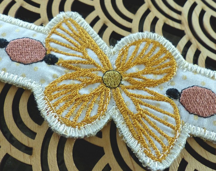 Bracelet "papillon jaune or" brodé et perles imitation cuivrées