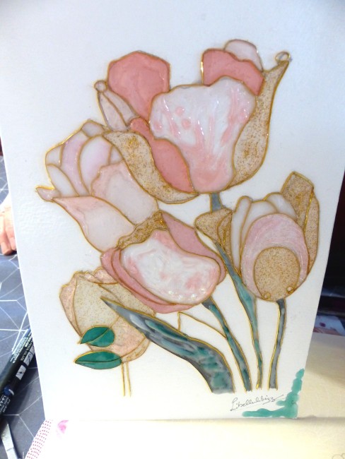 "Tulipes" cloisonnage et résine sur feuille, décoration intérieure